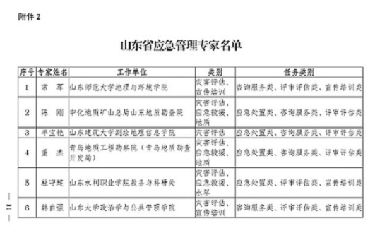 為充分發(fā)揮專家的決策咨詢和技術(shù)支撐作用,切實(shí)提高全省應(yīng)急管理的科技水平,提升綜合防災(zāi)減災(zāi)救災(zāi)能力,有效應(yīng)對(duì)安全生產(chǎn)類、自然災(zāi)害類突發(fā)事件,根據(jù)《山東省應(yīng)急管理專家管理辦法》(魯應(yīng)急發(fā)〔2021〕6號(hào))和《山東省應(yīng)急管理專家遴選實(shí)施辦法》(魯應(yīng)急辦發(fā)〔2021〕3號(hào)),省應(yīng)急廳組織開展了應(yīng)急管理專家遴選工作。經(jīng)申報(bào)、初審、審定和公示等遴選程序,決定聘閃淳昌等86名同志為山東省應(yīng)急管理咨詢專家(附件1)、常軍等1711名同志為山東省應(yīng)急管理專家(附件2)。現(xiàn)予以公布,聘期3年。聘期內(nèi)實(shí)施動(dòng)態(tài)管理,在聘情況以省應(yīng)急廳網(wǎng)站專家查詢系統(tǒng)顯示信息為準(zhǔn)。